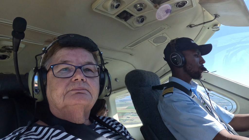 Yesterday’s plane was luxurious. 12 seats for passengers as well as the two pilot seats. There were however 13 passengers so I got upgraded to the co-pilot position. Great seat as, for some reason, they don’t want you touching the controls, so the seat is as far back as it can go, providing heaps of leg room.