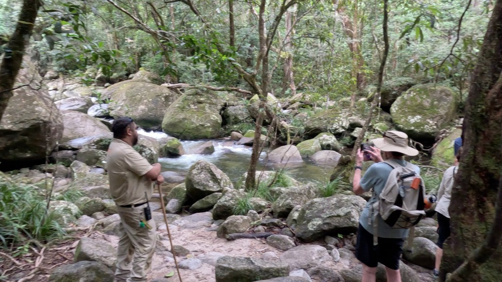 We then went on a walk around a privately owned property in the world heritage listed Daintree rainforest. This is one of the worlds oldest rainforests. The area was historically inhabited by indigenous folk, but they were all shipped off down to Mosman decades ago. The land was then divided into 120 acre blocks, and sold, with a view to logging once access was feasible. However, in the 1980s, it was compulsorily included within the World Heritage listing. The current owners purchased it back then and operate it as a world heritage site, which essentially means they can’t do anything on it except take small groups of tourists for walks. I went on the walk with Neil Hewett, one of the owners, and he was incredibly knowledgeable about the rainforest and it’s plants and animals. Head spinning stuff after 2 hours.