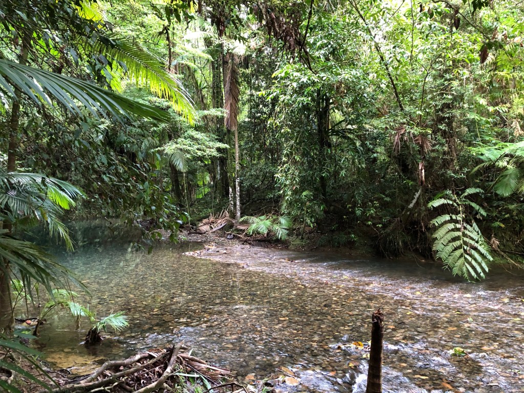 Overnight at a lodge in the forest at Daintree. wandered down to the swimming hole after breakfast.