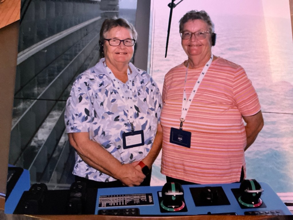 We’re gradually working out the best places to hang around in the ship. One important discovery is where to go to get offered the very nice NZ sav blanc as opposed to their alternative which is a pretty terrible US offering. It’s so bad that Val refused it in the casino and sent the poor guy to the other end of the boat to retrieve a bottle of NZ for us. We’re heading back there this afternoon so will be interesting to see if he remembers us. Last night we enjoyed a couple of glasses at our lounge whilst being entertained by a table of Americans disagreeing robustly on Trump. One woman was saying she no longer speaks to her best friend because they disagree on him so much. What a waste.