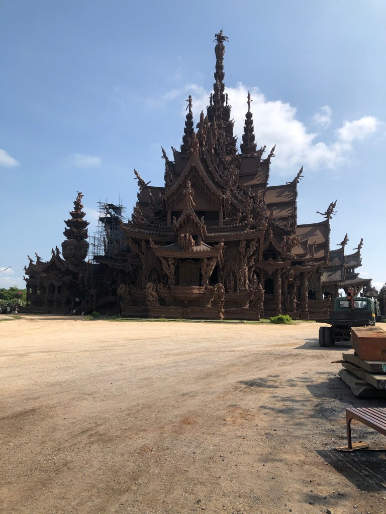 Yesterday we took a trip to Pattaya, about an hour from the port. This is a big beach side resort town- think gold coast on steroids. Lots of massage parlours, bars and pot shops. ( and single blokes wandering around). Our first stop was at a private museum The Santuary of Truth.