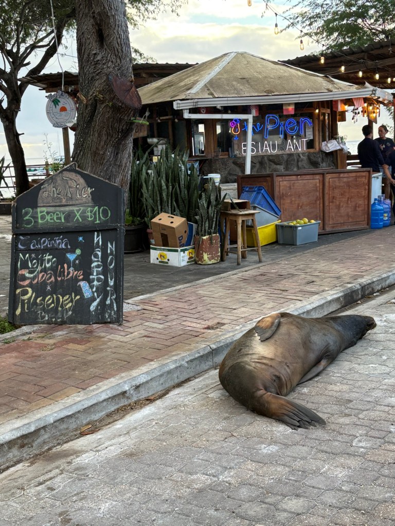 Next morning we backtracked to Guayaquil, the capital of Ecuador, and then caught a flight to San Cristobal. After some time in town, we embarked on our boat. The sea lions had claimed ownership of the town and were everywhere : lying across roads, taking over seats beside bus stops and all over beaches and parks mixing with population.